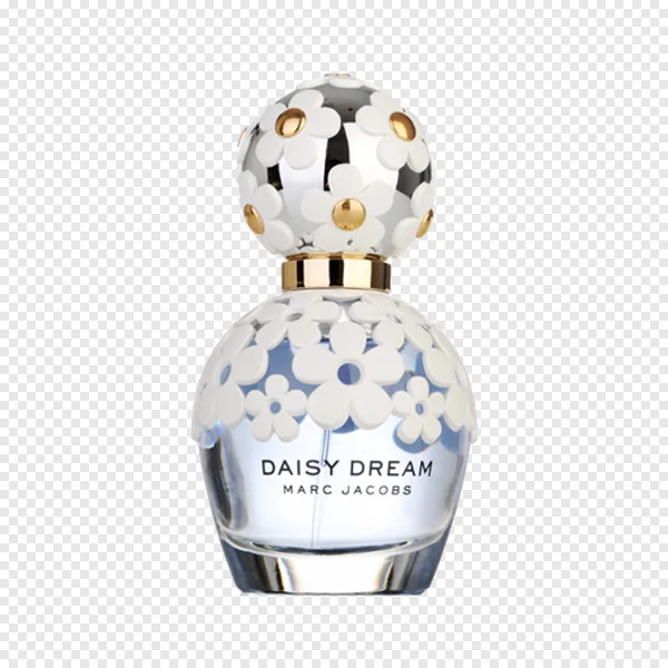 Download this stunning high-quality PNG image of the iconic Marc Jacobs Daisy Dream perfume bottle for free! This luxurious fragrance bottle features delicate white daisy flower embellishments and elegant gold accents, encapsulating a light blue liquid. Perfect for beauty blogs, e-commerce product mockups, graphic design projects, presentations, or personal creative ventures. Get this transparent background perfume bottle image now and elevate your designs with a touch of sophisticated floral elegance.