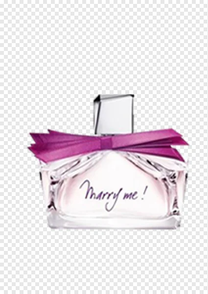 Download this exquisite 'Marry me!' perfume PNG for free, perfect for adding a touch of romance and elegance to your projects. This high-quality image features a clear glass fragrance bottle filled with a soft pink liquid, beautifully adorned with a vibrant purple ribbon bow. Ideal for beauty bloggers, marketing materials, fashion designs, product showcases, or personal creative ventures. With its transparent background, this luxurious women's perfume graphic is ready to enhance your visuals instantly. Get this captivating scent bottle PNG now!