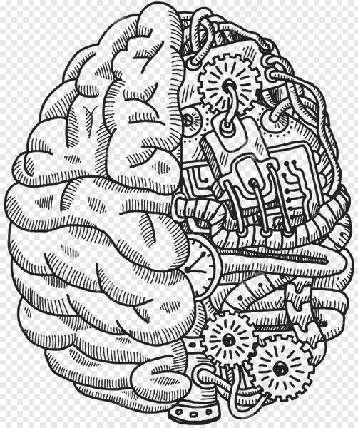 Explore the fascinating duality of mind with our free mechanical and organic brain illustration PNG. This unique hand-drawn design beautifully merges the intricate folds of a human brain with complex machinery, featuring gears, wires, circuit board elements, and clock faces. Perfect for projects related to Artificial Intelligence, neuroscience, technology, human thought processes, or even steampunk aesthetics. Download this high-quality PNG for educational content, creative designs, presentations, or conceptual art to represent the fusion of logic and creativity, man and machine. Get your free transparent brain graphic today and elevate your next design!