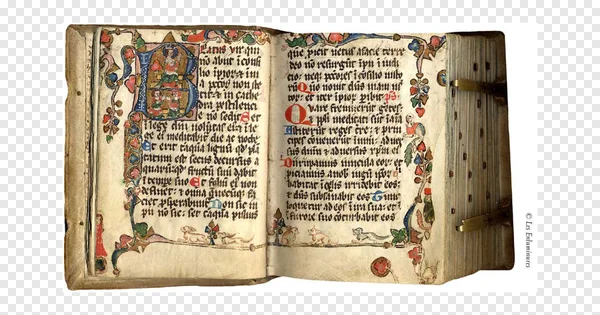 Download this stunning high-resolution PNG of an open page from a beautifully preserved medieval illuminated manuscript. Featuring intricate calligraphy, vibrant floral borders, and ornate initial letters, this image is perfect for historical projects, fantasy art, educational materials, or adding a touch of old-world charm to your designs. Free for personal and commercial use! Enhance your projects with this authentic piece of history.