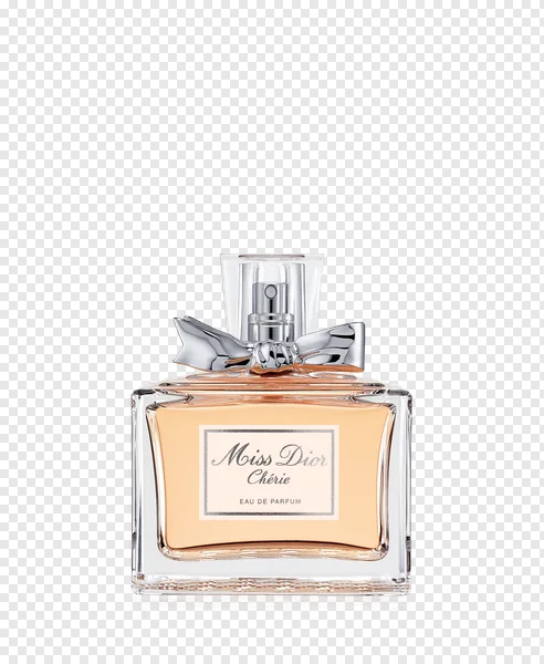 Download a high-quality, transparent PNG image of the iconic Miss Dior Chérie Eau de Parfum bottle. Perfect for graphic design projects, presentations, website visuals, or adding a touch of luxury to your creations. This free PNG features the classic rectangular bottle shape, silver bow detail, and elegant label. Enhance your designs with this beautiful and versatile perfume image – download now!