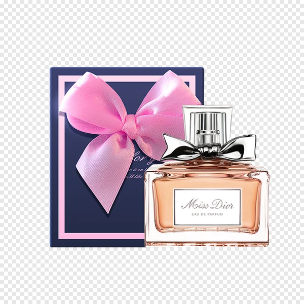 Download a high-quality, transparent PNG image of a Miss Dior Eau de Parfum bottle with a beautiful pink ribbon. Perfect for graphic design projects, presentations, website backgrounds, or social media posts. Enhance your beauty and fashion-related designs with this elegant and free-to-use image! Get instant access and elevate your creative work today. No attribution required.