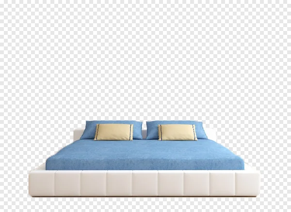 Download this stunning high-resolution PNG image of a modern king-size bed with a white platform base and a blue denim-style bedding set. Perfect for interior design websites, presentations, brochures, or social media posts. The image features crisp details, a clean background, and is easy to incorporate into your design projects. Download now and elevate your visuals!