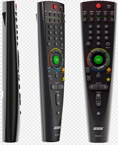 Get this free high-quality PNG image of a sleek, modern black BBK RC026-01R remote control, perfect for your digital projects. This detailed render, featuring front and side views, is isolated on a transparent background, making it ideal for web design, UI/UX mockups, presentations, tech articles, or any creative endeavor requiring a professional electronics graphic. Enhance your visual content with this sharp, ready-to-use TV and media controller graphic. Download now and elevate your design work effortlessly!