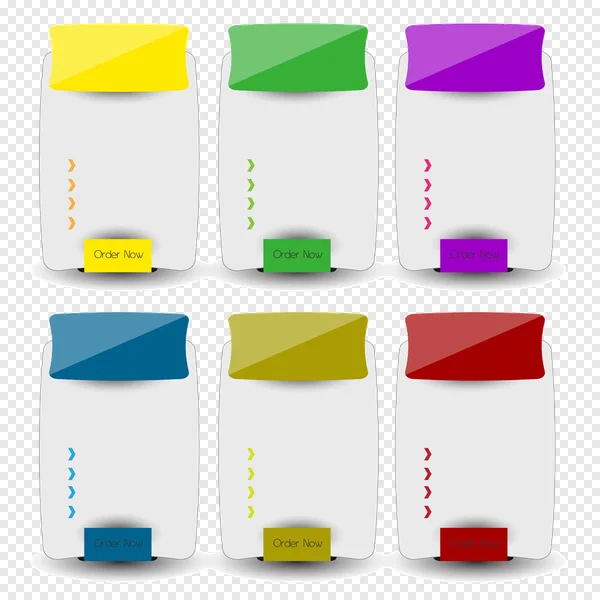Download our free PNG image featuring a set of 6 modern and colorful pricing tables or product display boxes, perfect for enhancing your website's UI. Each versatile web element includes a glossy header, feature bullet points, and an eye-catching 'Order Now' call-to-action button. Ideal for service packages, product features, or subscription plans. Boost your website's engagement with these professional, ready-to-use graphic assets. Get high-quality, transparent PNGs for your next design project today!