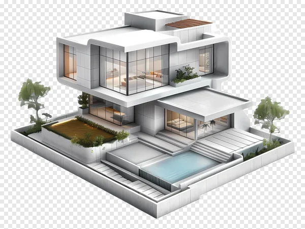 Download this stunning, high-quality PNG of a modern white villa with a sleek design, private pool, and lush landscaping. Perfect for architectural visualizations, design projects, presentations, or website graphics. This transparent background image is free to use for both personal and commercial projects. Enhance your designs with this beautiful, contemporary home illustration! Get your free download now!