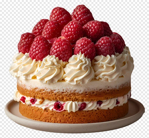 Indulge in this exquisite free PNG of a raspberry layer cake, piled high with luscious fresh raspberries and elegant swirls of creamy whipped frosting. This delightful naked cake, featuring golden sponge layers and a visible berry filling, is perfect for adding a touch of sweetness to your food blog, recipe cards, party invitations, or any graphic design project. This high-resolution image boasts a transparent background, making it incredibly easy to integrate into your creative work. Download this vibrant, mouth-watering dessert for free and elevate your designs instantly!