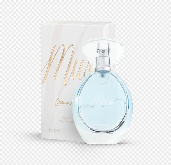 Elevate your designs with this elegant free PNG of Muse Graine de Pastel Eau de Toilette. This high-quality image features a delicate light blue, oval-shaped perfume bottle with a clear cap, alongside its sophisticated white box adorned with gold 'Muse' script. Perfect for beauty blogs, e-commerce stores, product mockups, or any creative project needing a touch of luxury and freshness. Download this transparent background fragrance PNG today to enhance your visual content with a captivating and clean aesthetic.