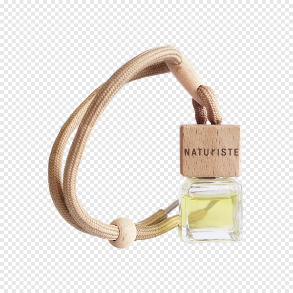 Download this high-quality free PNG of a NATUYISTE wooden car air freshener. This elegant hanging diffuser features a minimalist square wooden cap, a clear glass bottle filled with natural yellow essential oil, and a stylish beige braided rope and wooden bead. Perfect for automotive interior design projects, eco-friendly product presentations, or adding a touch of natural freshness to your digital creations. Get this transparent background image for your website, social media, or presentations today!