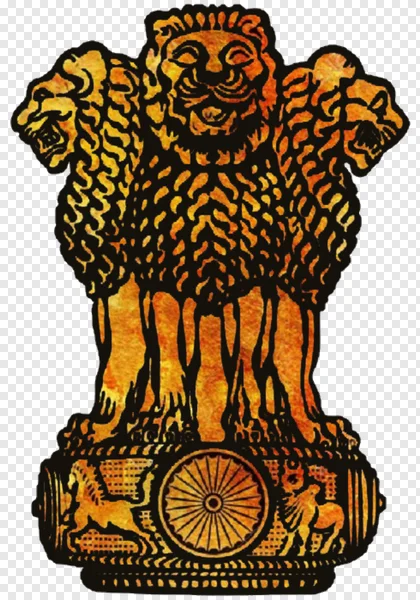 Download this stunning gold-textured PNG of the National Emblem of India, featuring the iconic Sarnath Lion Capital of Ashoka with four majestic Asiatic lions (three visible). This official symbol rests on an abacus, below which a prominent Dharma Chakra (Wheel of Law) is flanked by a powerful galloping horse on the left and a steadfast bull on the right. Ideal for official documents, educational projects, cultural presentations, or digital designs. Get this high-resolution, transparent background image for free to beautifully represent India's pride, heritage, and government symbolism in your next creative endeavor. Enhance your projects with this distinguished and historically significant emblem today!