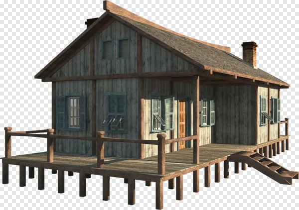 Download this stunning free PNG of an old wooden stilt house, perfect for adding a touch of rustic charm to your creative projects. This high-quality image features a weathered wood cabin with a charming front porch, sturdy pilings, and a practical staircase. Admire the vintage blue shutters on the windows, a classic wooden door, and a prominent brick chimney, all rendered with rich detail. Ideal for digital art, graphic design, presentations, or website enhancements, this transparent background PNG offers versatility and a unique aesthetic. Instantly elevate your designs with this quaint and timeless architectural piece!