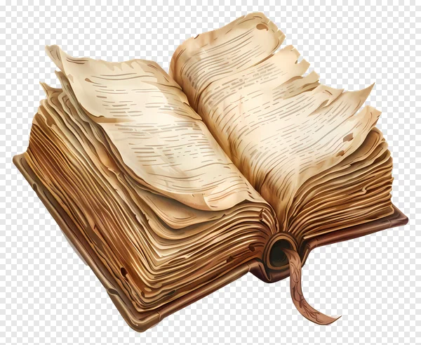 Download this stunning, high-quality open ancient book PNG image for free! Perfect for fantasy art, historical designs, RPG game assets, or adding a touch of vintage charm to your projects. This detailed illustration features a weathered, aged manuscript with visible page textures and a decorative clasp. Use it for backgrounds, graphics, or as a unique element in your creative work. Transparent background for easy integration. Get your free download now!