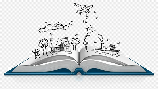 Tags: adventure blue book boat doodle book PNG book reflection childhood creativity doodle art education free PNG download hand-drawn house doodle imagination learning open book sketch stick figure storytelling transparent background white pages