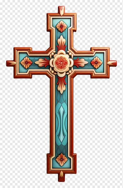 Download this stunning, high-resolution PNG image of an ornate Christian cross! Featuring intricate details, a teal and red color scheme, and a classic design, this cross is perfect for religious projects, graphic design, websites, presentations, and more. Use it to symbolize faith, spirituality, or add a beautiful decorative element to your work. Get your free download now and enhance your creative projects!