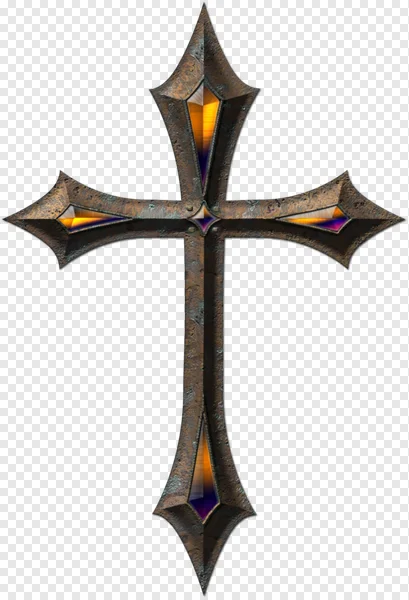 Download this stunning, high-resolution ornate metal cross PNG image for free! Perfect for religious projects, graphic design, website backgrounds, or adding a touch of gothic elegance to your artwork. This detailed cross features a metallic texture with vibrant amber and purple gemstone accents. Transparent background for easy integration. Get your free download now!