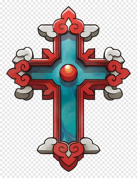 Download this stunning, high-quality ornate cross PNG image for free! Featuring a detailed design with vibrant red and cool blue tones, accented with white flourishes, this cross is perfect for religious projects, fantasy art, game development, or adding a unique touch to your designs. Transparent background for easy integration. Enhance your creative work with this beautiful, free-to-use graphic!
