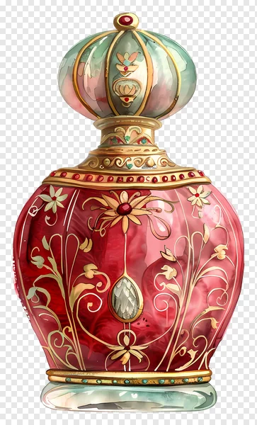 Unleash enchantment with this exquisite free PNG of an ornate red and gold fantasy perfume bottle. Featuring intricate floral patterns, shimmering jewels, a striking teardrop gem, and a regal green cap, this luxurious vintage-style potion vial is perfect for adding a touch of magic to your digital art, graphic design projects, invitations, or storybook illustrations. Download this high-quality, transparent background image now to elevate your creations with its unique baroque charm and vibrant details. Ideal for fantasy themes, historical designs, or any project needing a touch of old-world elegance. Get your transparent jeweled bottle PNG today!