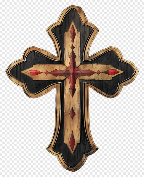 Download this stunning, high-resolution ornate wooden cross PNG image for free! Perfect for religious projects, graphic design, website backgrounds, or adding a spiritual touch to your artwork. Featuring a detailed wood grain texture, red gemstone accents, and a unique, stylized design, this transparent background cross is ideal for a variety of creative uses. Get your free download now and enhance your designs with this beautiful symbol of faith!