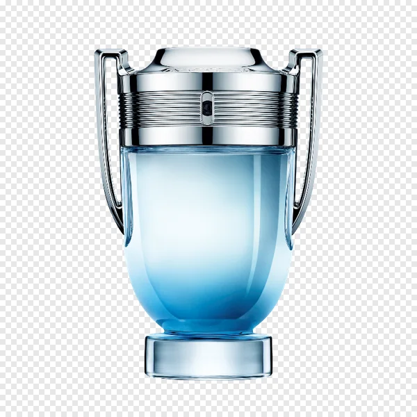 Download a high-quality, transparent PNG image of the iconic Paco Rabanne Invictus perfume bottle! Perfect for graphic design projects, presentations, website visuals, or social media. This free PNG features the distinctive trophy-shaped bottle with its silver accents and blue liquid. Enhance your designs with this stylish and recognizable fragrance image – download now and use it freely!