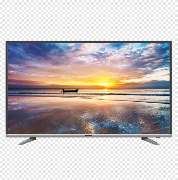 Download this high-quality PNG image of a Panasonic flat-screen TV displaying a stunning beach sunset scene. Perfect for mockups, presentations, website designs, or any project needing a realistic TV screen visual. This free PNG features a vibrant sunset over the ocean with a small boat, showcased on a modern Panasonic television. Enhance your designs with this beautiful and versatile image – download now!