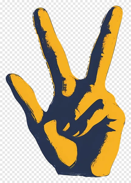 Download this striking peace sign hand graphic as a high-quality PNG image for free! Perfect for projects promoting peace, love, unity, or social activism. Use it in posters, presentations, social media, or any design needing a powerful symbol of harmony. This image features a bold, two-tone color scheme and a textured, hand-drawn style. Get your free download now and spread the message of peace!