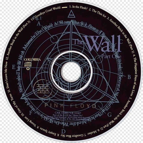 Download a high-quality, transparent PNG of Pink Floyd's iconic 'The Wall' album cover! Perfect for music enthusiasts, graphic design projects, fan art, and more. This free image features the complete album artwork, including tracklist details. Enhance your creative work with this classic rock design – download now and use it freely!