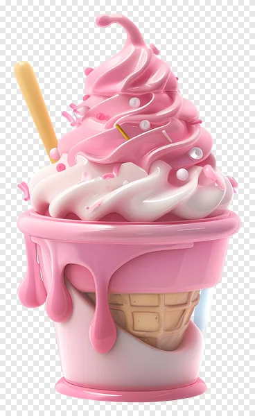 Download this adorable pink ice cream PNG image for free! Perfect for adding a sweet touch to your designs, websites, social media, or any creative project. This high-quality graphic features a classic ice cream cone with dripping swirls and a wafer cone. Use it for food blogs, dessert menus, party invitations, or simply to brighten up your visuals. Transparent background for easy integration. Get your free download now!