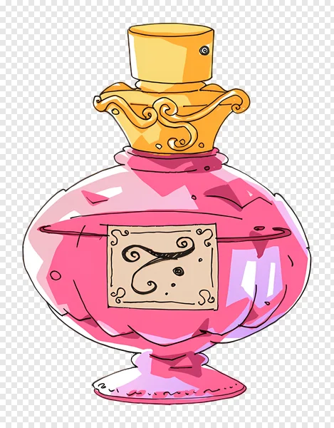 Tags: beauty product cartoon perfume cosmetic cute decorative elegant feminine fragrance free PNG gold cap hand-drawn illustration liquid ornate bottle perfume bottle pink perfume scroll label swirl design transparent background vintage style