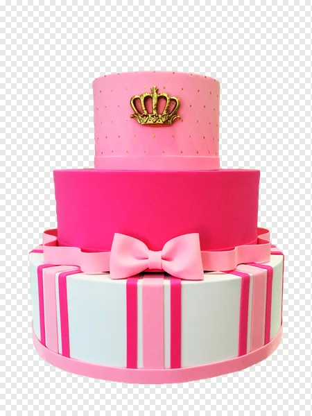 Adorn your designs with this stunning free Pink Princess Crown Tiered Cake PNG! This high-quality, transparent background image features a beautiful three-tier celebration cake, elegantly decorated with vibrant pink and white layers, a majestic golden crown, delicate bows, and charming striped patterns. Ideal for birthday party invitations, baby shower announcements, princess-themed events, scrapbooking, digital art, or any project needing a touch of royal sweetness. Download this adorable, festive dessert graphic for free and add a magical touch to your creative endeavors. Perfect for girl birthdays, quinceañeras, or any special occasion!
