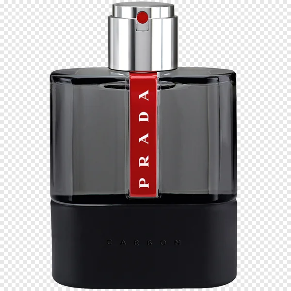 Download a high-quality, transparent PNG image of the Prada Carbon perfume bottle! Perfect for graphic design projects, website mockups, marketing materials, or adding a touch of luxury to your creations. This free-to-use image features the iconic black bottle with the bold red 'PRADA' lettering and 'CARBON' text. Enhance your designs with this stylish and versatile asset – download now and enjoy!
