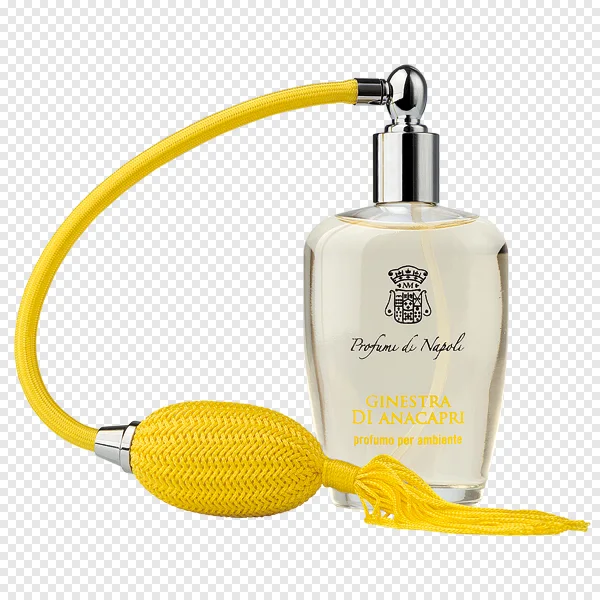 Download this exquisite, high-quality PNG of the Profumi di Napoli Ginestra di Anacapri room spray. This luxurious fragrance bottle features a distinctive vintage-style yellow bulb atomizer with a charming matching tassel, creating an air of classic elegance. Perfect for graphic designers, content creators, and e-commerce websites looking for isolated, high-resolution product imagery. Use this free PNG to enhance product showcases, beauty blogs, lifestyle articles, or any creative project. Capture the essence of Italian sophistication and vibrant yellow aesthetics with this unique and visually appealing room fragrance bottle.