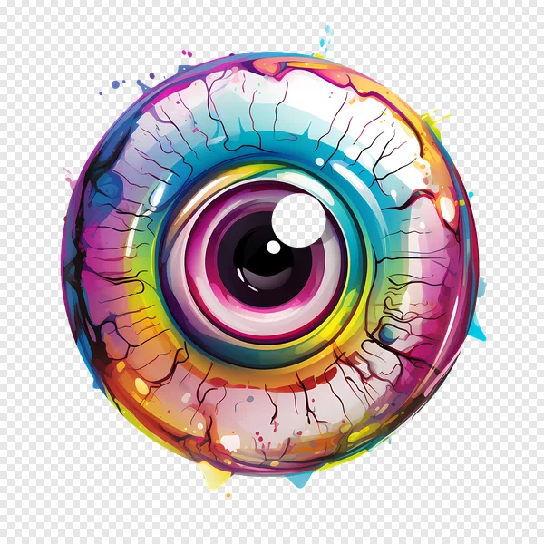 Dive into a kaleidoscope of colors with our free Psychedelic Watercolor Eyeball PNG! This unique, high-resolution image features a vibrant, abstract eye adorned with stunning paint splatters and intricate, colorful veins. Perfect for graphic designers, digital artists, or anyone looking to add a pop of creative energy to their projects. Whether you're designing for Halloween, a music event, a t-shirt, a website, or unique personal art, this striking and artistic eyeball graphic is sure to capture attention. Download this captivating, colorful eye with transparent background for free and elevate your designs today!