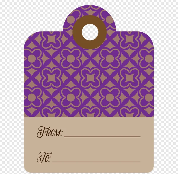 Download this beautiful purple floral gift tag PNG for free! Perfect for adding a touch of elegance to your presents, crafts, or party favors. This high-quality image features a repeating floral pattern in shades of purple and a classic 'From' and 'To' layout. Use it for gift wrapping, scrapbooking, event decorations, or digital designs. Get your free download now and make your gifts extra special!
