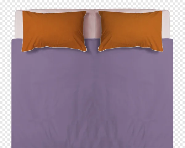 Download this high-quality PNG image of a neatly made bed featuring a purple duvet and two burnt orange pillows with white piping. Perfect for design projects, website mockups, or presentations needing a clean, minimalist bedroom aesthetic. The image offers a top-down view, ideal for showcasing bedding textures and color combinations. Free download now!