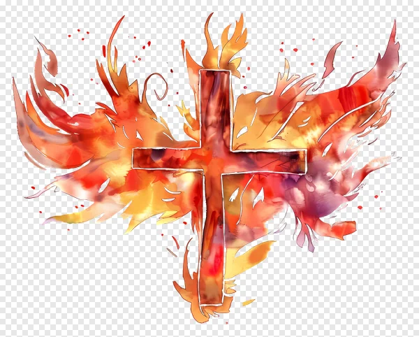 Tags: Abstract Christian Art Christian PNG Church Art Digital Illustration Divine Energy Faith Symbol Fiery Cross PNG Flame Cross Free Download Graphic Element Holy Spirit Fire Phoenix Wings Rebirth Red Orange Flames Religious Symbol Resurrection Symbol Spiritual Design Transparent PNG Vibrant Spiritual Watercolor Cross