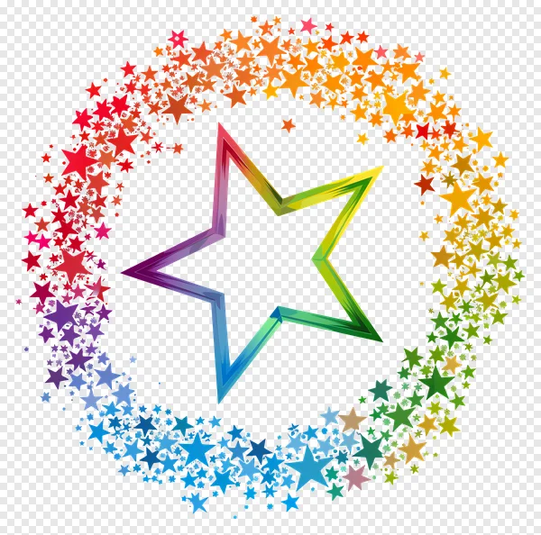 Download this vibrant and eye-catching rainbow starburst PNG image for free! Featuring a large, colorful star surrounded by a swirling circle of smaller stars in every color of the rainbow, this graphic is perfect for adding a touch of sparkle to your designs. Use it for backgrounds, decorations, social media posts, or any project needing a bright, cheerful element. High-resolution and transparent background for easy integration. Get your free download now!