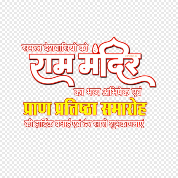 Celebrate the historic Ram Mandir consecration! Download this stunning, high-quality PNG image for free. Perfect for social media posts, event invitations, website graphics, and expressing your devotion. Featuring vibrant red and white text in Hindi, this design conveys heartfelt congratulations for the Pran Pratishtha ceremony. Get your free download now and share the joy!