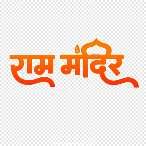 Download a high-quality Ram Mandir PNG image for free! This vibrant orange and white design features the text 'Ram Mandir' in Devanagari script, beautifully stylized with a traditional temple arch. Perfect for religious projects, devotional art, social media posts, or any design needing a touch of Indian culture and spirituality. Get your free transparent background PNG now and enhance your creative work!