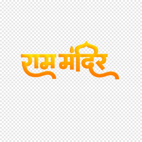 Download a high-quality, transparent Ram Mandir text PNG image for free! Perfect for devotional projects, social media posts, presentations, or any design needing a representation of the sacred Ram Temple. This vibrant orange and gold design features the text 'Ram Mandir' in Devanagari script with a stylized temple dome. Enhance your projects with this culturally significant and visually appealing graphic. Get your free PNG download now!