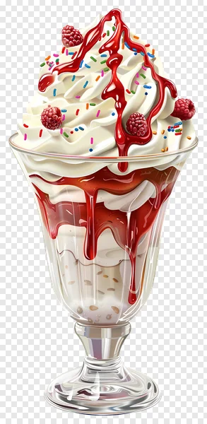 Indulge your designs with this delicious, high-quality Raspberry Ice Cream Sundae PNG! Perfect for food blogs, dessert menus, website graphics, or any project needing a sweet touch. This free PNG features a beautifully detailed sundae with creamy vanilla ice cream, vibrant raspberries, rich strawberry sauce, colorful sprinkles, and an elegant glass. Download now and add a delightful treat to your creations – completely free!
