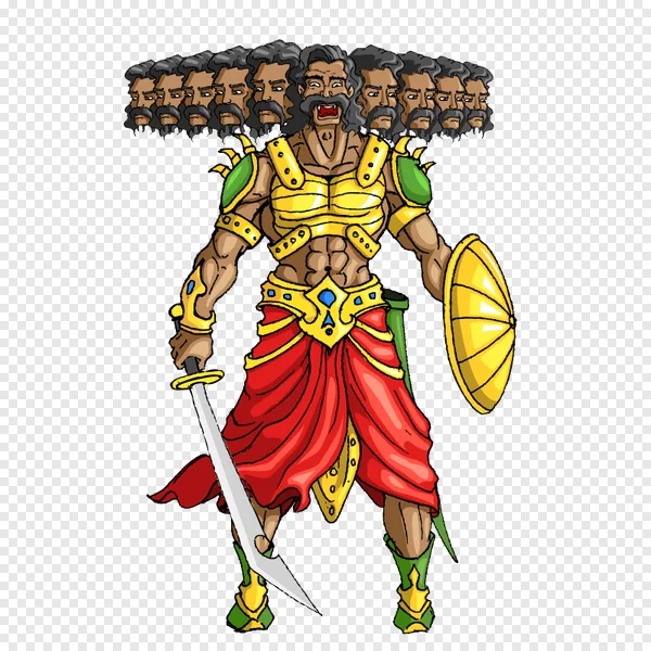 Download this stunning, high-quality PNG image of Ravana, the ten-headed demon king from the Ramayana epic! Perfect for mythology projects, illustrations, graphic design, or adding a unique touch to your artwork. This free PNG features a detailed depiction of Ravana with his sword and shield, ready to use in your creative endeavors. Get your free download now and bring the legends of ancient India to life!