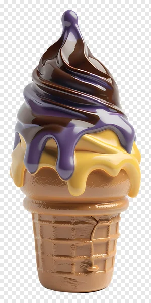 Download this stunning, high-resolution PNG image of a realistic ice cream cone! Featuring a delicious swirl of chocolate, vanilla, and purple flavors with a detailed waffle cone, it's perfect for food blogs, dessert menus, graphic design projects, and more. Free for personal and commercial use – add a sweet touch to your creations today! Transparent background for easy integration. Get your free download now!