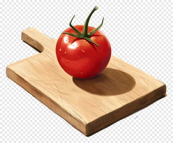 Download this high-quality, realistic PNG image of a ripe tomato resting on a wooden cutting board. Perfect for food blogs, recipe designs, kitchen-themed projects, or adding a fresh touch to your digital artwork. This transparent background image is free to use for personal and commercial projects. Get your free download now and enhance your creative designs with this vibrant and detailed tomato illustration!