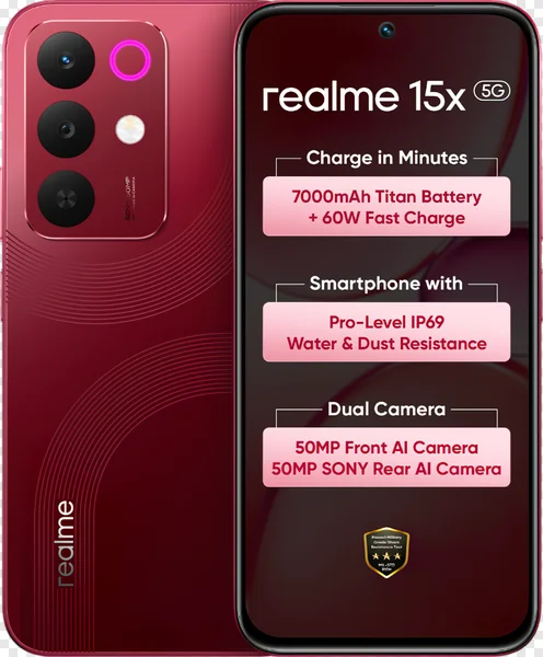 realme 15x 5G PNG Download: High-Quality Maroon Red, Aqua Blue & Marine Blue Transparent Images