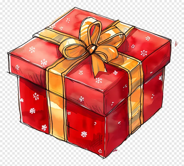 Download this beautiful, high-quality red gift box PNG image for free! Perfect for holiday designs, birthday graphics, or any project needing a festive touch. This watercolor-style present illustration features a vibrant red box with a golden ribbon and delicate snowflake accents. Use it for cards, invitations, social media posts, and more. Transparent background for easy integration into your designs. Get your free download now!
