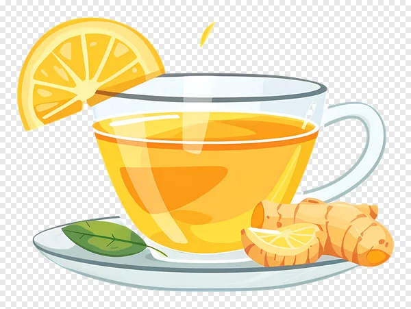 Download this vibrant and refreshing ginger lemon tea PNG image for free! This high-quality illustration features a clear glass cup filled with golden herbal tea, garnished with a bright lemon slice on the rim. On the saucer, you'll find fresh ginger root, an extra lemon wedge, and a delicate green leaf. Perfect for health blogs, recipe websites, menu designs, wellness presentations, or any project needing a touch of natural warmth and flavor. The transparent background makes it easy to integrate into your designs. Get this zesty, immune-boosting drink graphic instantly!