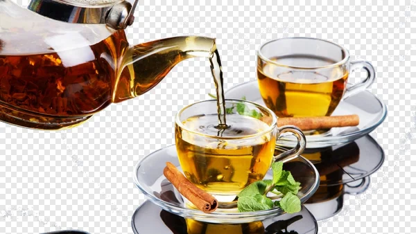 Capture the essence of a comforting moment with this high-quality free PNG image. It features a beautiful glass teapot expertly pouring golden-amber hot tea into a clear glass teacup, perfectly garnished with fresh mint leaves and aromatic cinnamon sticks. Another matching teacup with cinnamon sits ready, creating a complete and inviting scene. Ideal for food blogs, recipe websites, digital menus, presentations, or adding a touch of warmth and freshness to any design project. This image, with its transparent background, makes it incredibly easy to integrate into your creative work. Download this refreshing tea scene instantly for your personal or commercial use and elevate your visuals!