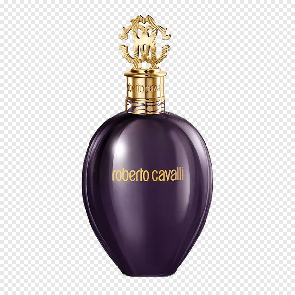 Download this stunning Roberto Cavalli perfume bottle PNG image for free. Featuring a luxurious dark purple, almost black, bottle with elegant golden "roberto cavalli" lettering and a distinctive ornate gold cap, this transparent background PNG is perfect for your design projects. Ideal for beauty product showcases, e-commerce listings, blog posts, marketing materials, or presentations. Elevate your visuals with this high-quality, isolated luxury fragrance image. Get your free download now and add a touch of sophistication!