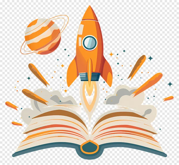 Tags: book cartoon education exploration illustration imagination knowledge launch learning orange planet png reading rocket school science space stars transparent background vector