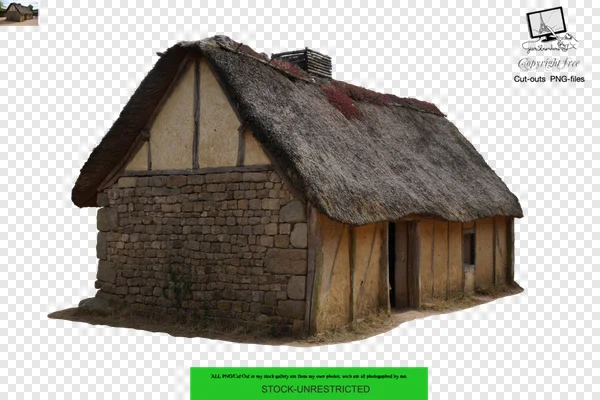 Transport your designs to a bygone era with this free PNG of a rustic thatched roof house. Featuring sturdy stone walls, charming half-timber detailing, a classic thatched roof, and a small chimney, this old European cottage evokes a sense of history and tradition. Perfect for adding an authentic touch to historical illustrations, fantasy game environments, educational projects, or rural landscape compositions. Download this high-quality, transparent background image for your creative endeavors today and give your visuals a unique, timeless appeal. Ideal for graphic designers, game developers, and educators looking for historical architectural elements.